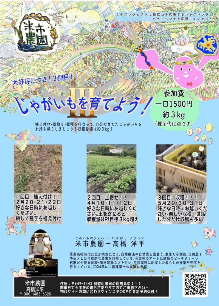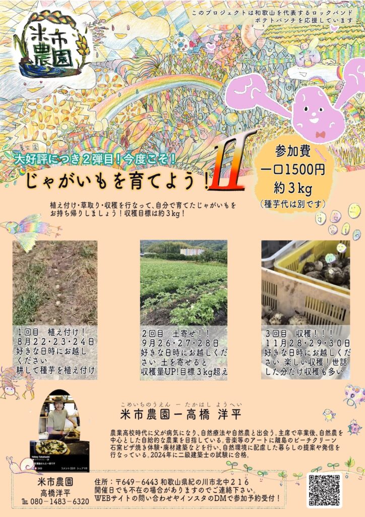 Gメールで件名に「じゃかいも体験参加希望」と入れて下さい。
