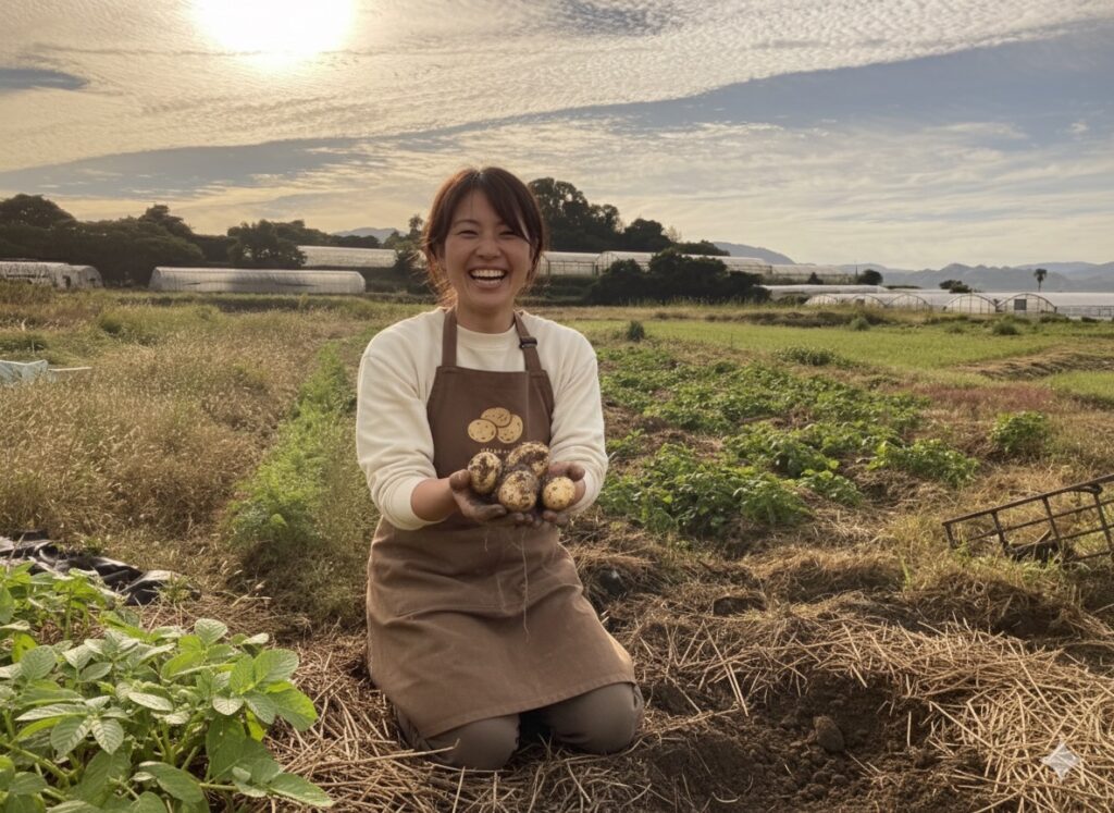 和歌山の畑で、じゃがいもをぽてぽて育てています🥔 実はちょっとおっちょこちょいですが、この土には可能性があるって信じているんです!